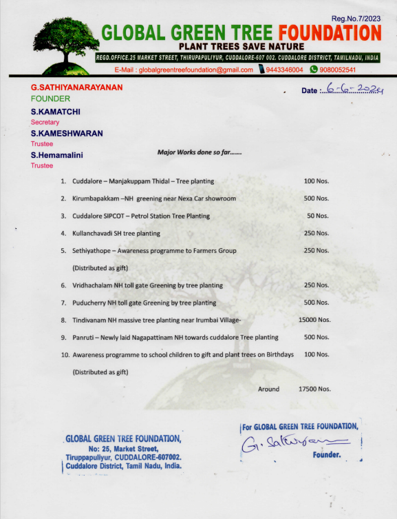 Providing tree planting services for sustainable income and environment conservation in Cuddalore district.